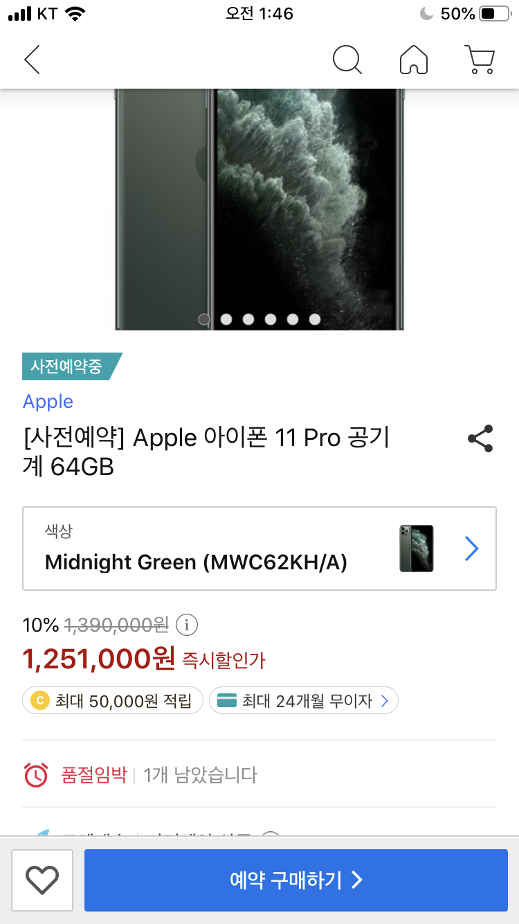 아이폰11 프로 사전예약 배너창이 있더라