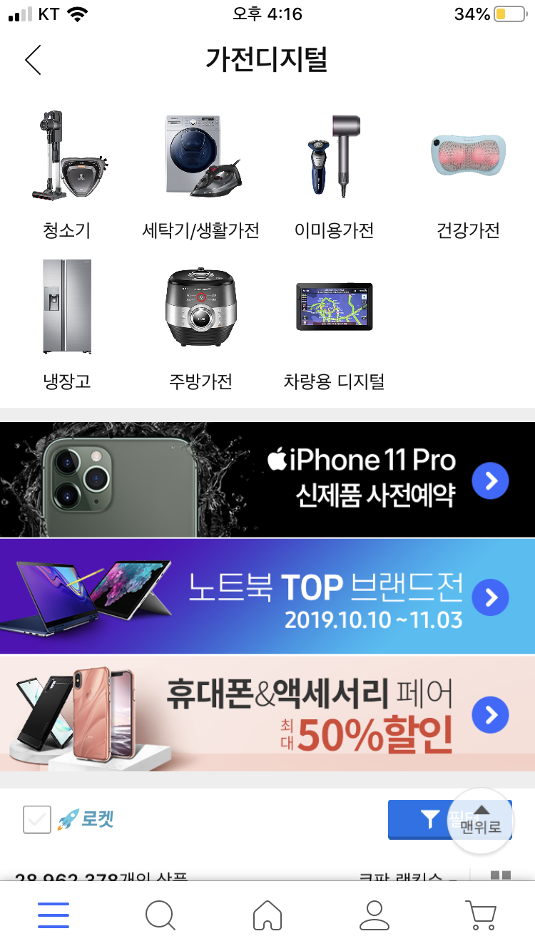 가전디지털 카테고리 들어가니까
