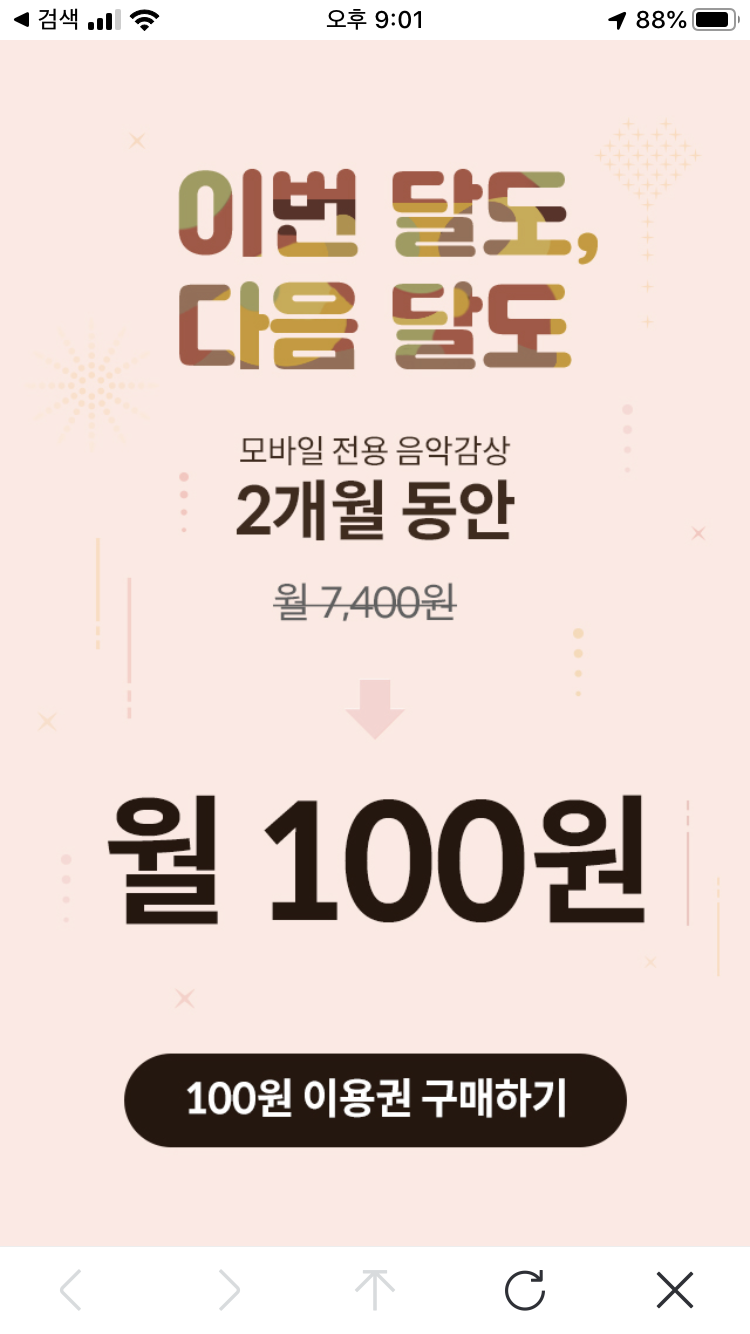 지금 지니 뮤직에서는 월 100원에 모바일 음악감상을 할 수 있다고 한다