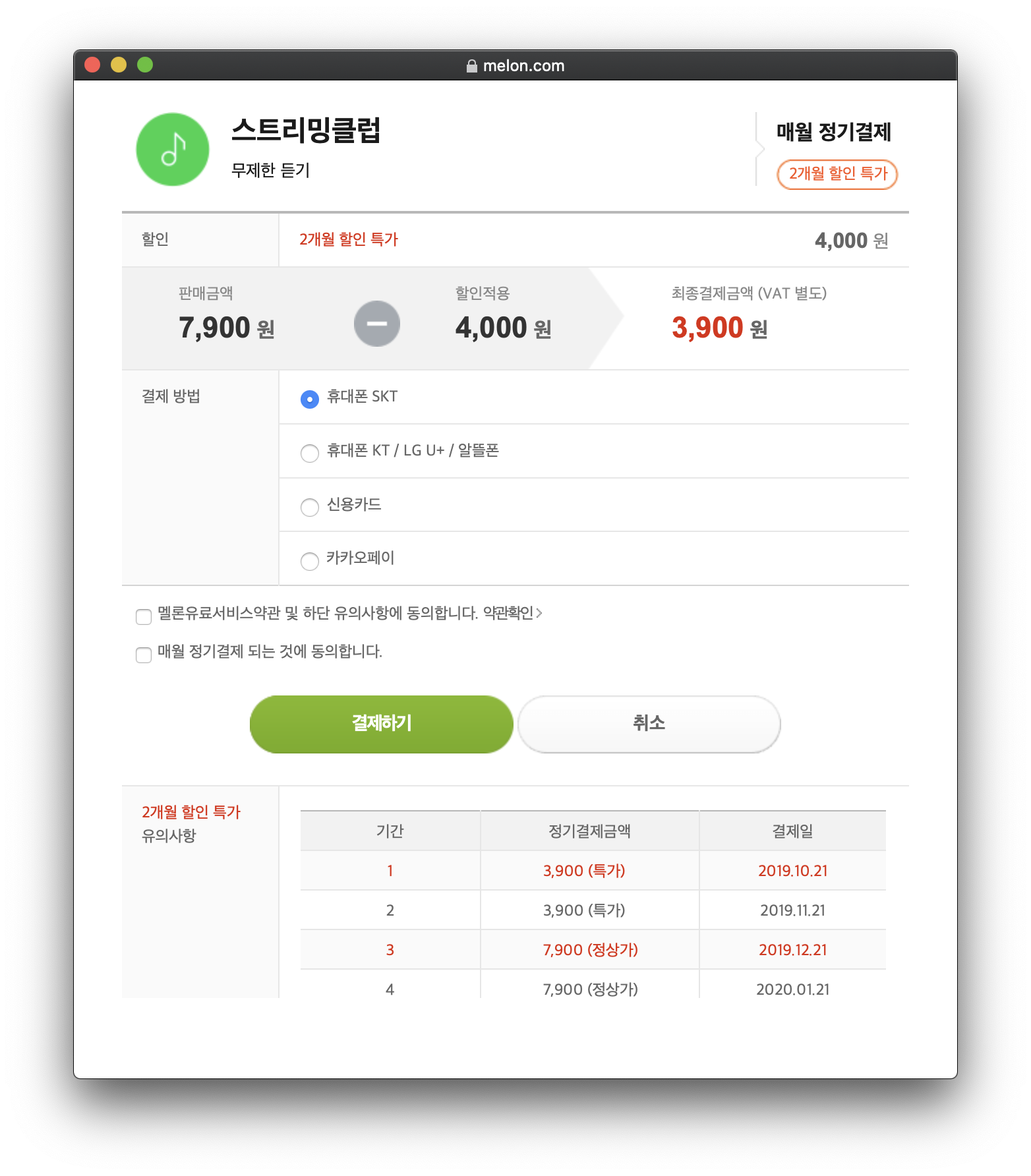 막상 결제할때 보니 "2개월 할인 특가"라고 뜨더라...ㅡㅡ;