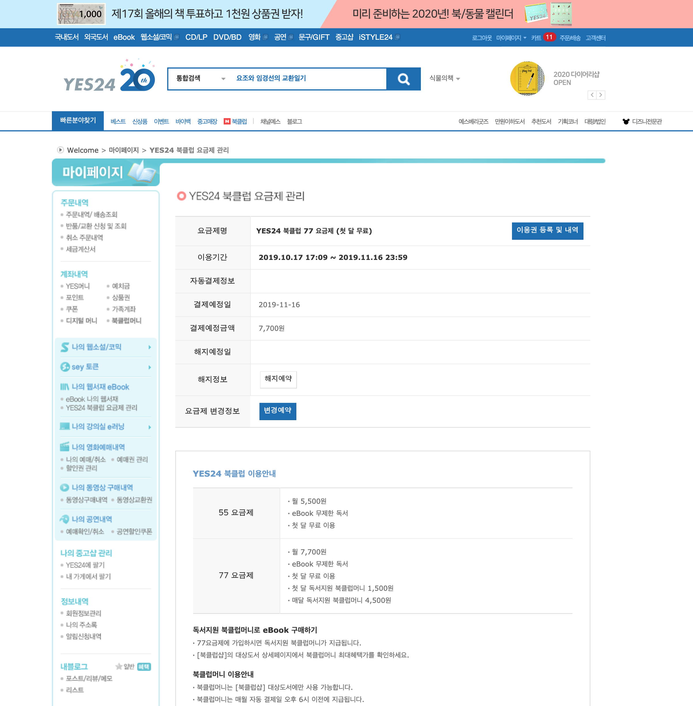 예스24 북클럽은 한달을 무료로 이용할 수 있다.
