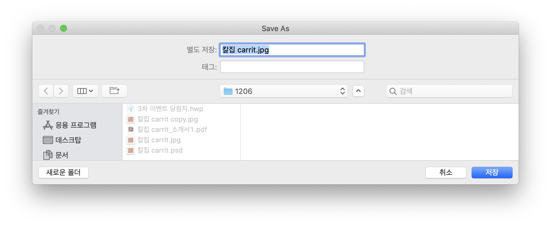 칼집 carrit.jpg파일을 선택해서 그 파일 그대로 덮어씌워 jpg로 저장을 하고 싶은데