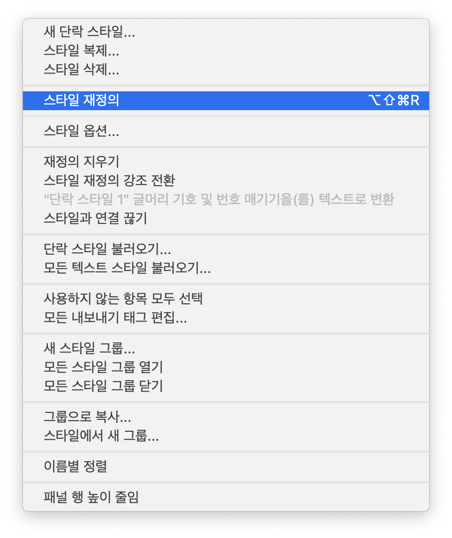 적용된 단락스타일 아래쪽에 등록된 스타일이 보이는데