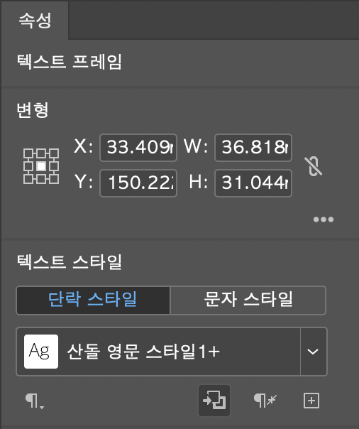 화살표와 네모2개 아이콘이 '스타일재정의' 버튼이다.