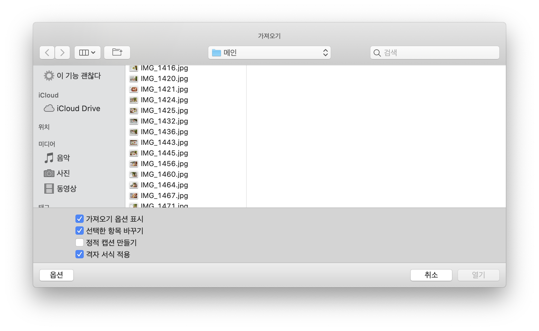 가져오기 옵션 표시