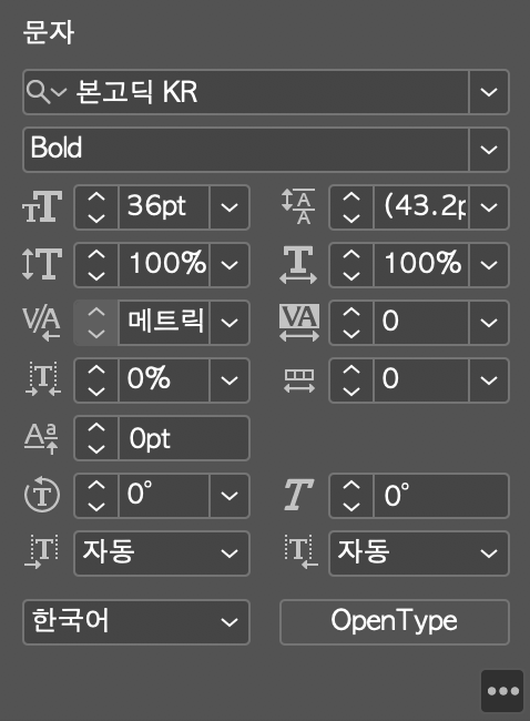 인디자인에서 위와 같이 문자를 드레그한 상태에서