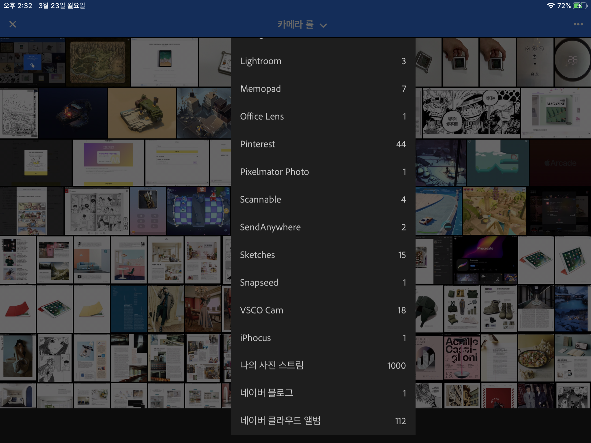 그래서 항상 아이폰 사진을 에어드랍으로 아이패드로 보내서 그걸 다시 불러오기 해서 쓰는데...