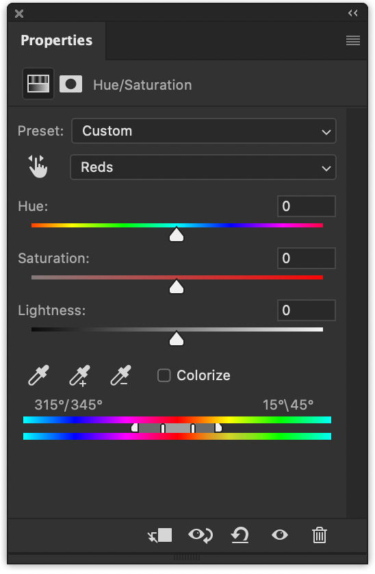 Hue/Saturation 패널 위쪽에 있는 손가락을 클릭하면