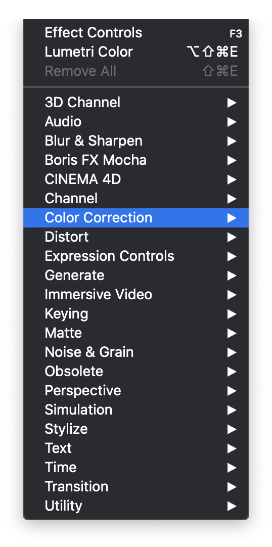 [effect]-[color correction]-[lumetri color]로 들어가면 된다.