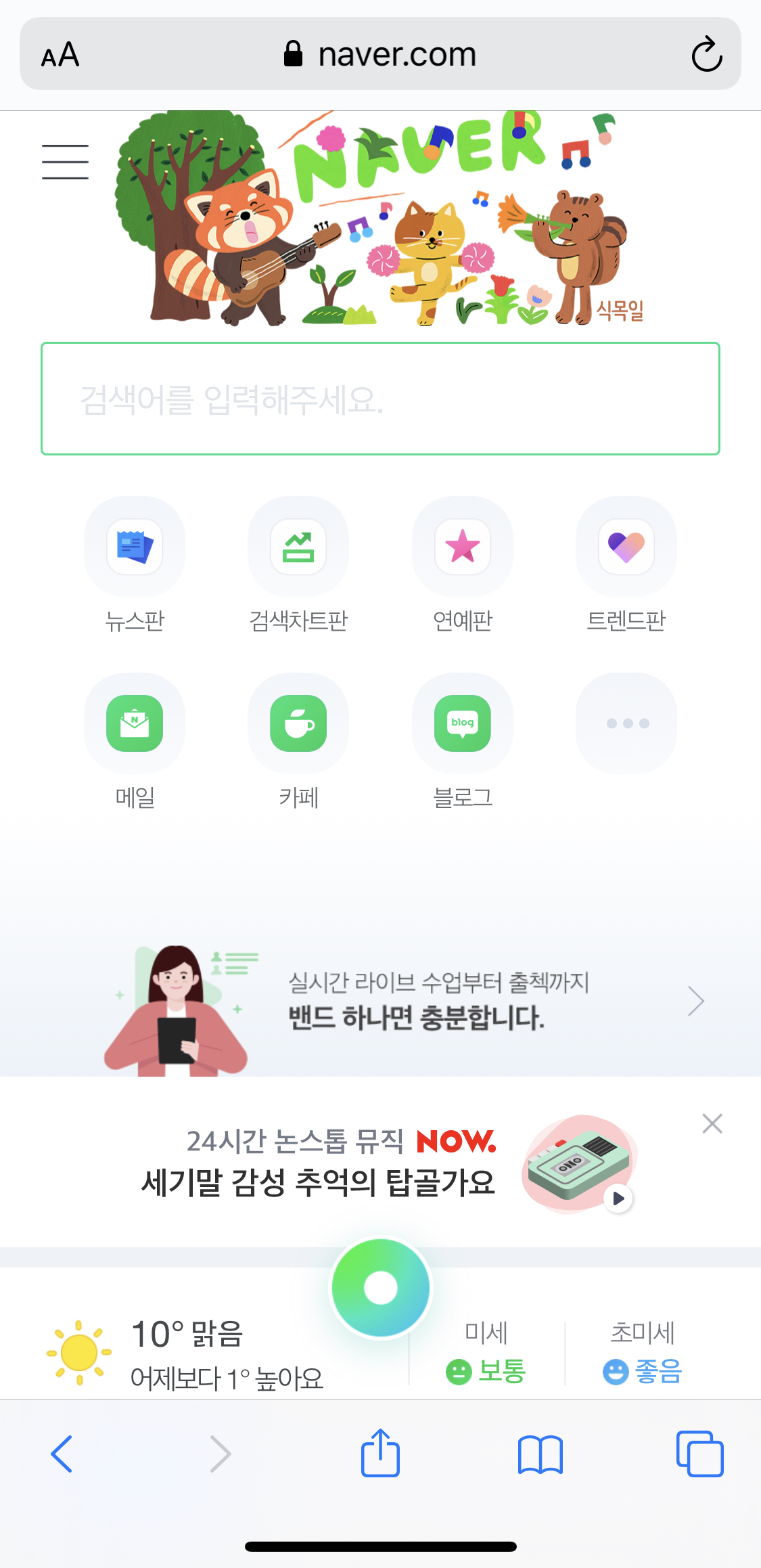 아이폰에서 사파리로 네이버를 주로 이용하는데