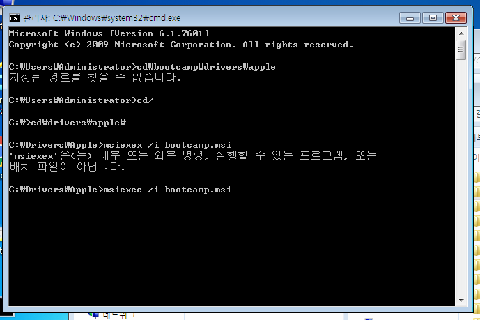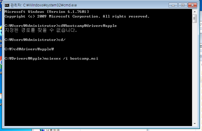 그래서 알아보니 부트캠프 드라이버를 C드라이브에 복사해서 넣어놓고 관리자 명령어로 들어가서