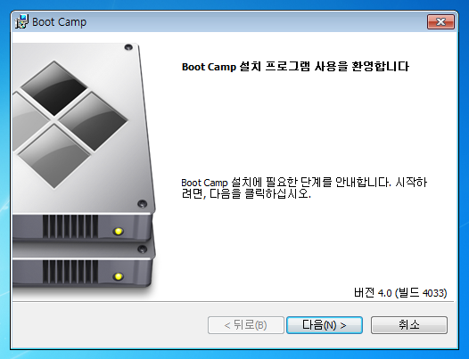 (현제 애플에서는 4033버젼의 부트캠프를 더이상 지원하지 않는다.)