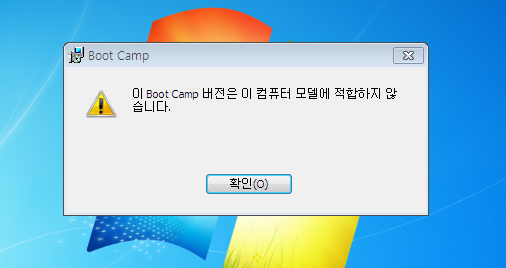 '이 boot camp 버전은 이 컴퓨터 모델에 적합하지 않습니다.'