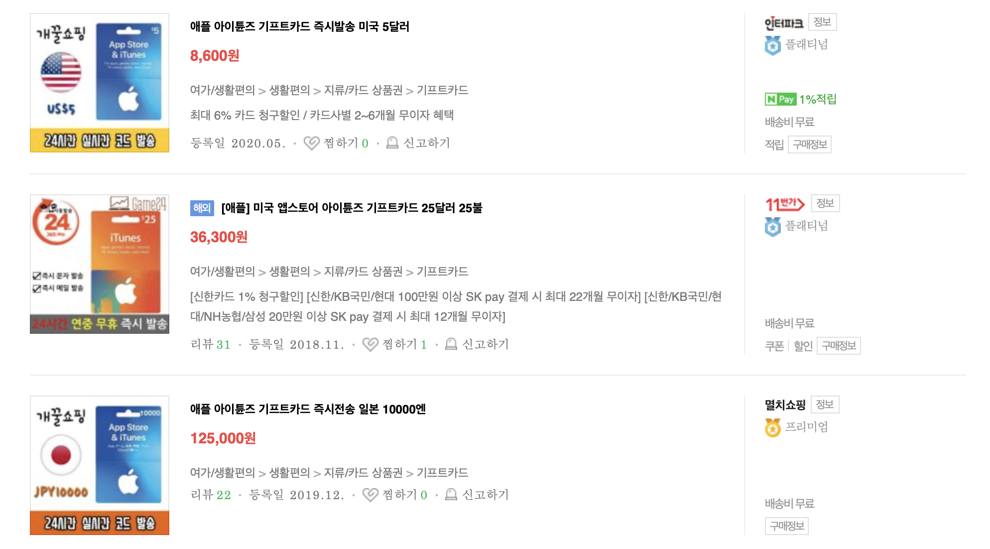 애플 기프트카드라고 검색을 하면 엄청 많은 결과물들이 나온다.