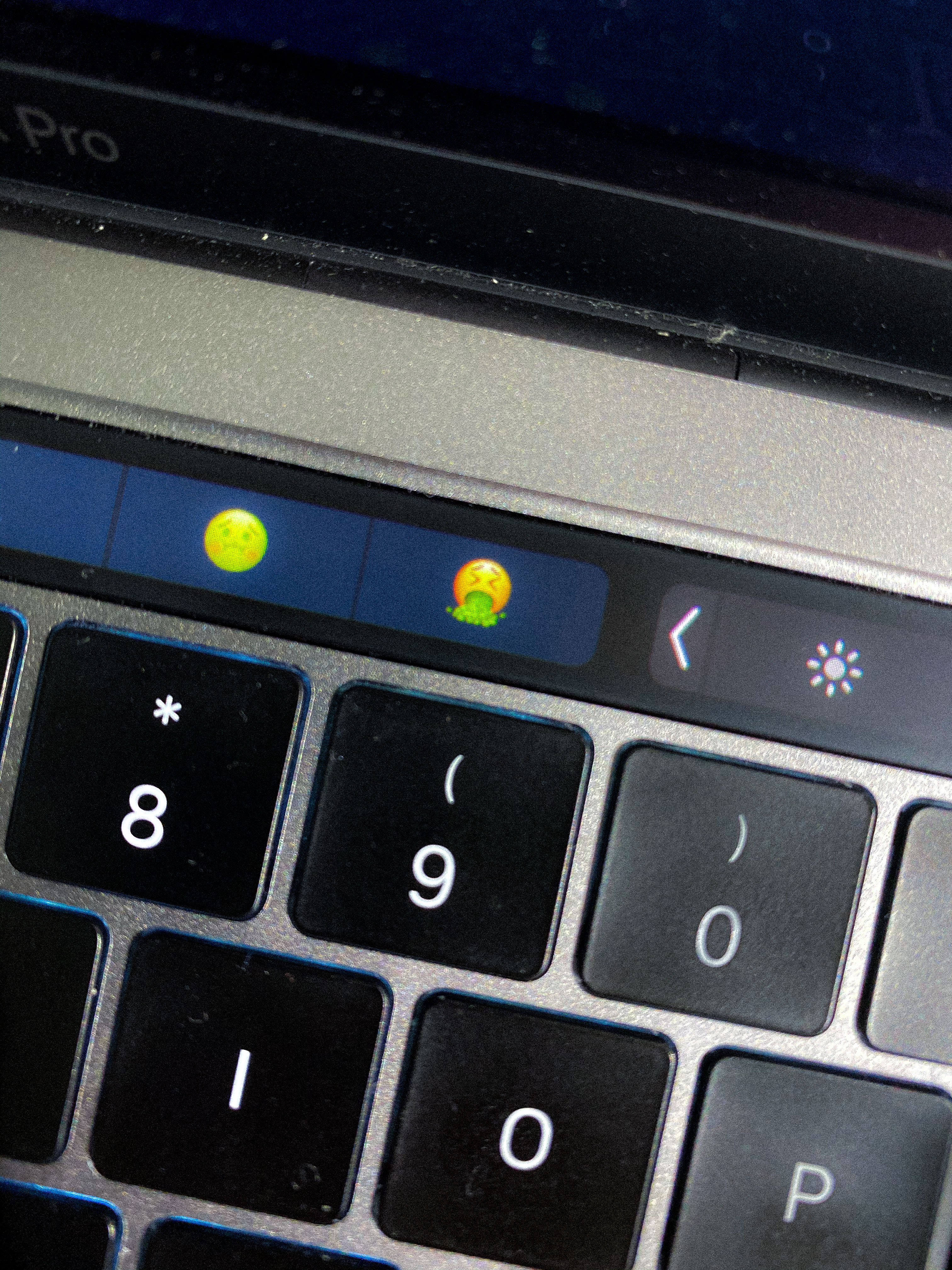 맥북프로에서 글을 쓰다가 '토'라는 단어를 쓰면 아이폰처럼 터치 바에 토하는 이모티콘이 나온다.