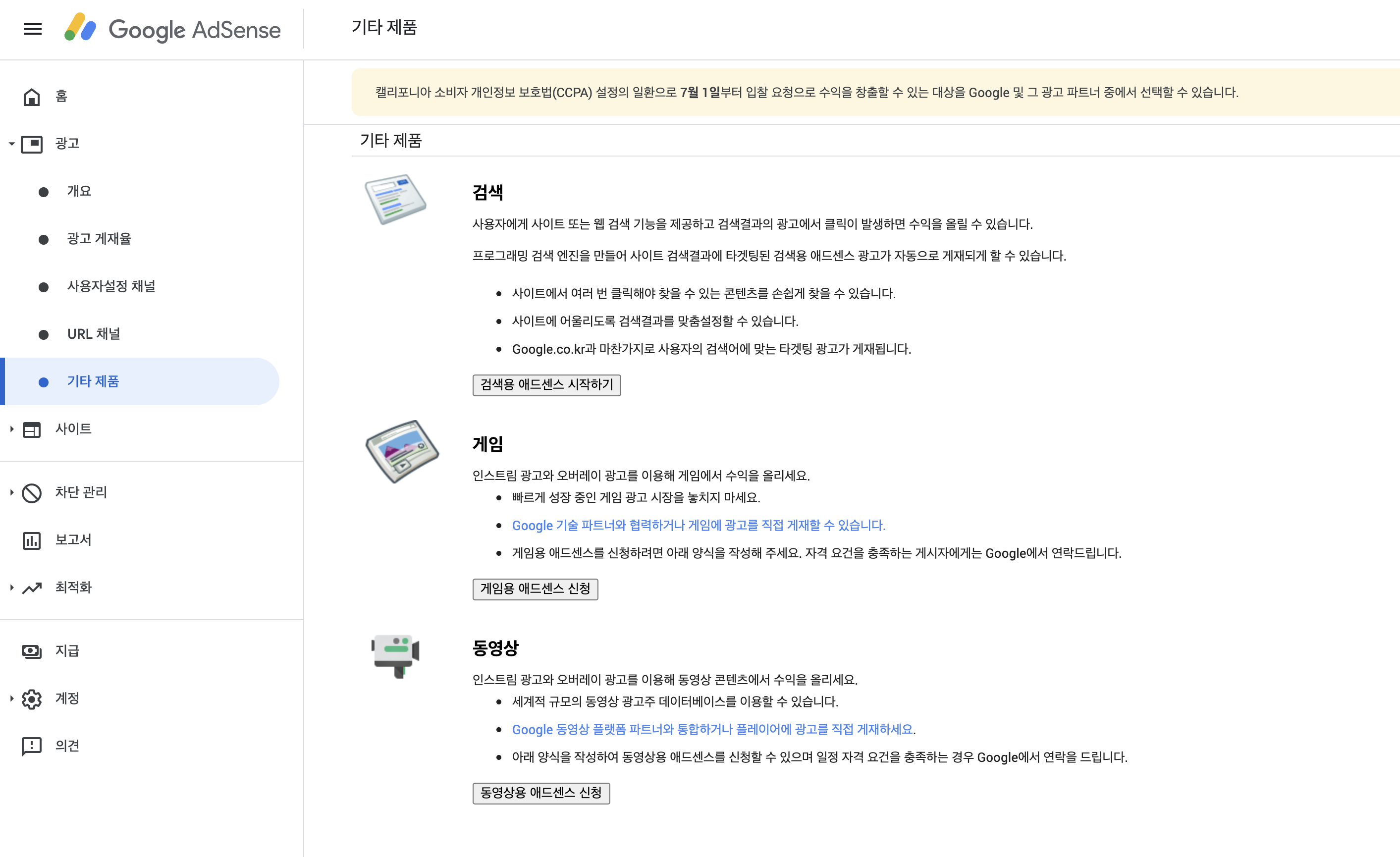 동영상용 애드센스 신청