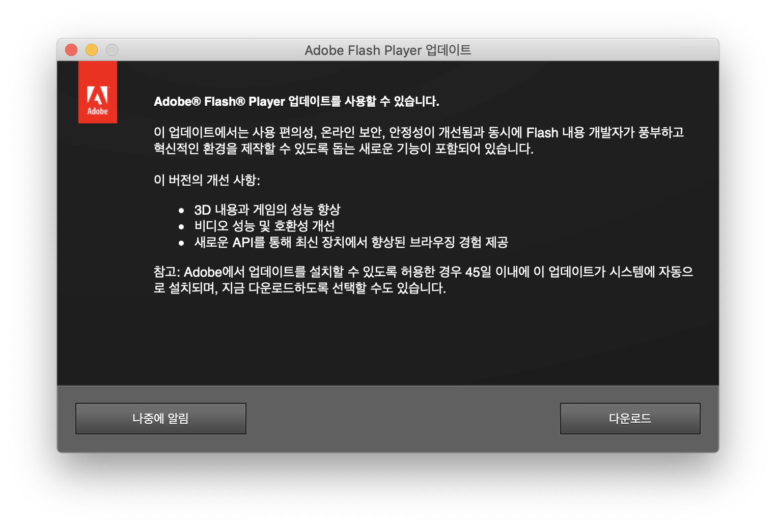 구글 크롬에서도 이제 플레시 플레이어를 지원하지 않는다고 브라우저 켤때마다 알람이 오는데