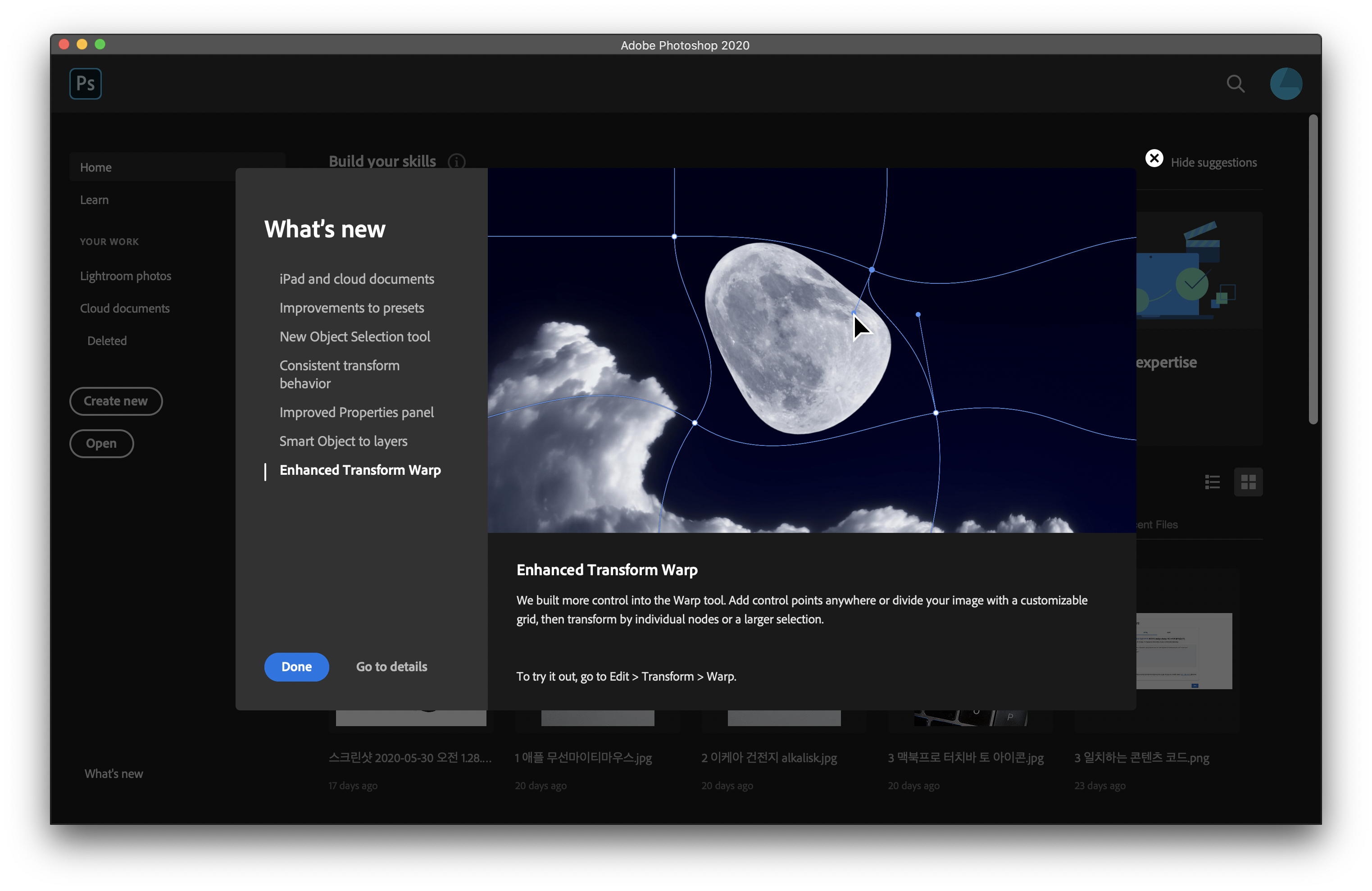 포토샵을 실행하면 새로운 기능이 소개되는데
