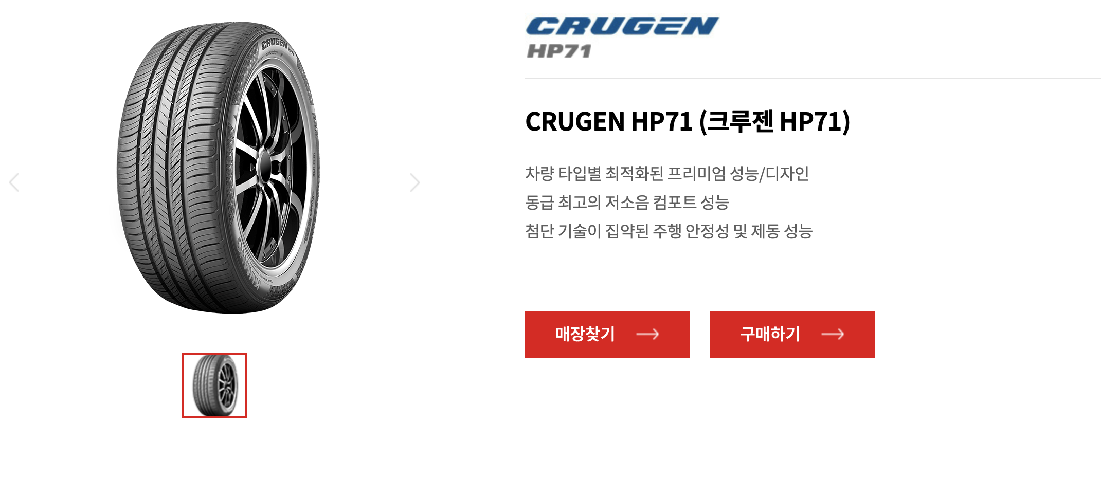 우선 인터넷에서 제일 저렴하게 금호타이어 크루젠 hp71을 판매하는 곳을 찾았다.
