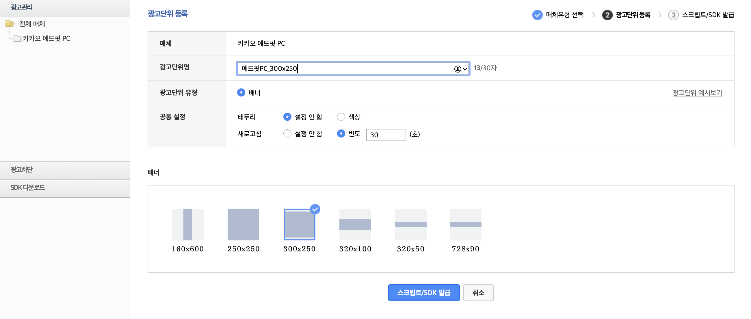 광고단위를 만들때 배너 사이즈를 설정하는 곳이 나오는데