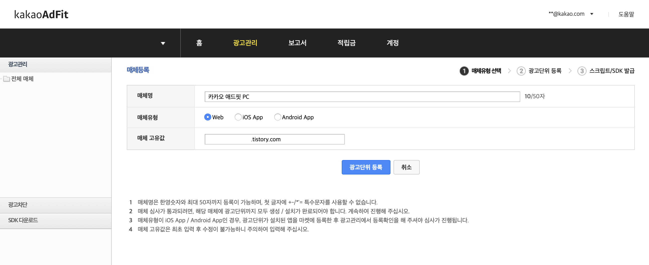 kakaoAdfit에 회원가입만 한다고 광고가 붙는게 아니니