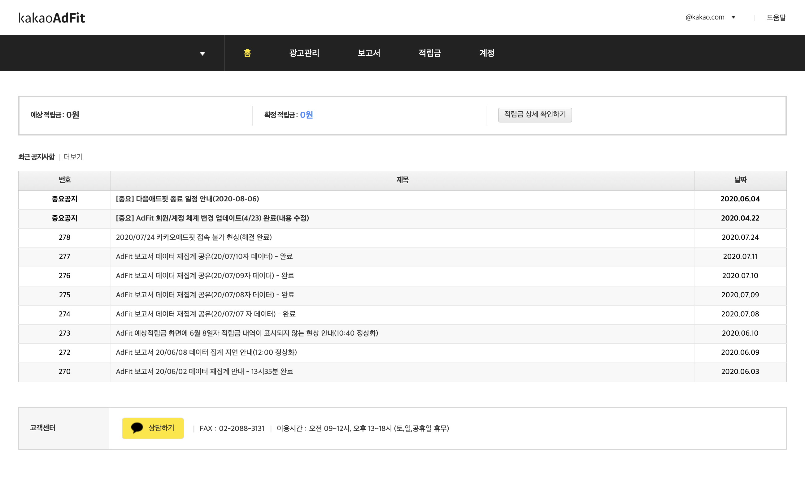 이제 다음애드핏은 더이상 지원을 하지 않고