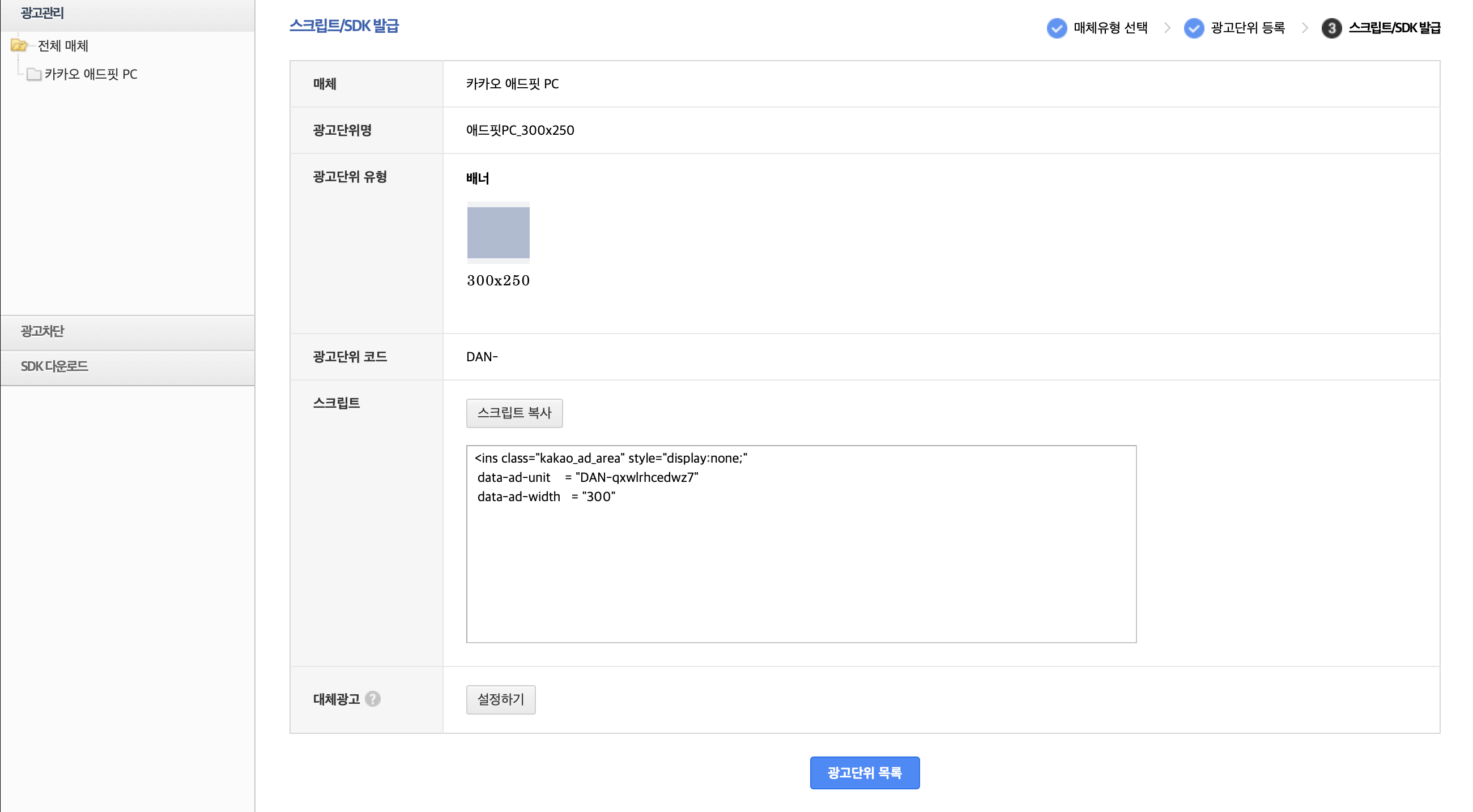 모든 과정을 끝내면 카카오 애드핏으로 이동할 수 있다.