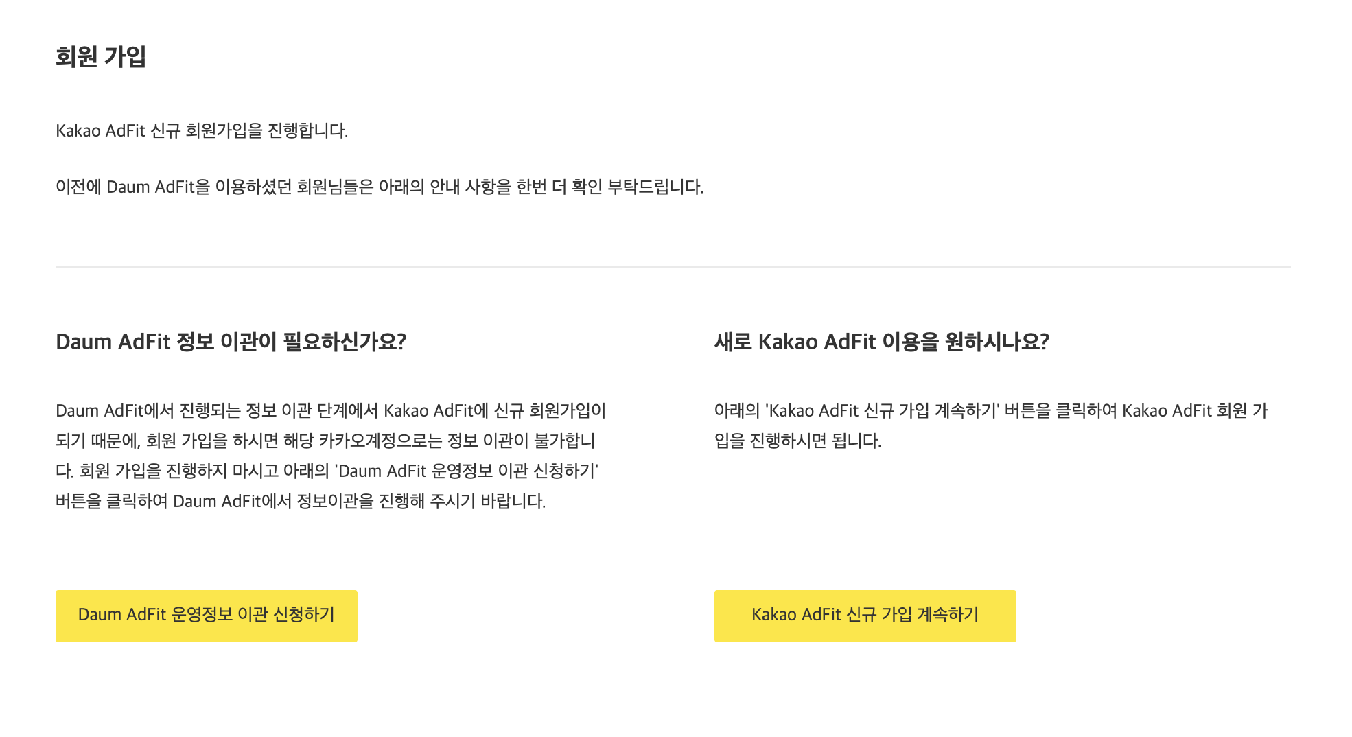 예전 다음애드핏 회원이라면 이관신청하면 되고