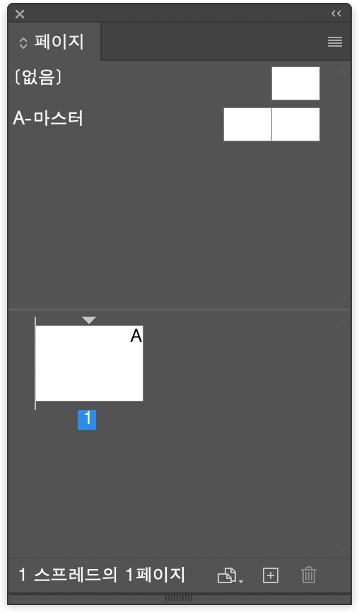 그럼 페이지 패널에 나와있는 페이지가 2로 표시가 되고 중간선 왼쪽부터 페이지가 시작됨을 볼 수 있다.