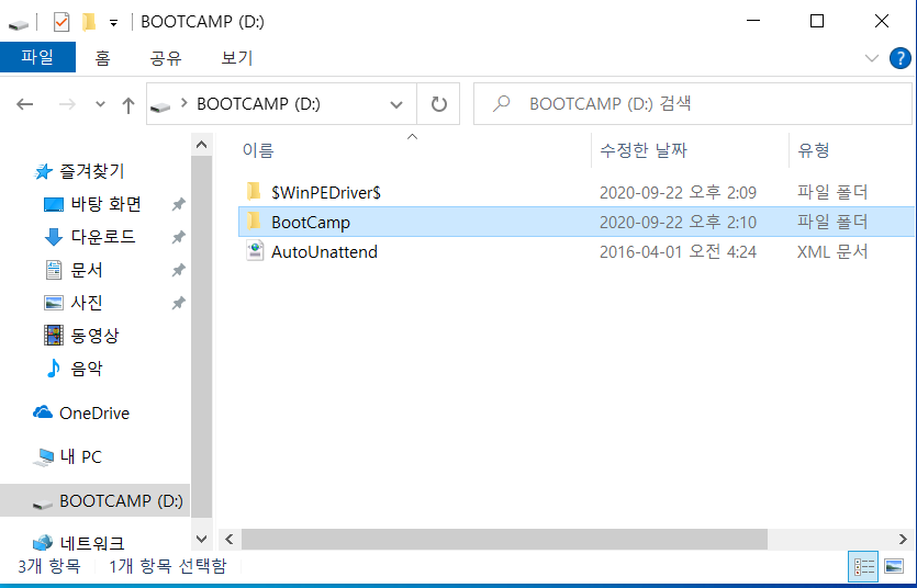 bootcamp 폴더 안에 있는 setup 파일을 더블클릭해서 실행한다.