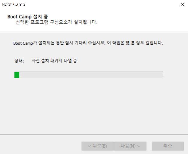 boot camp 설치 중