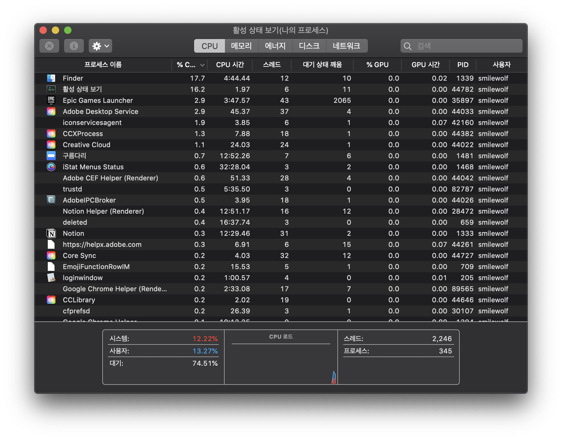 자세히 보니 adobe 무슨 프로그램이 실행되어 있어서