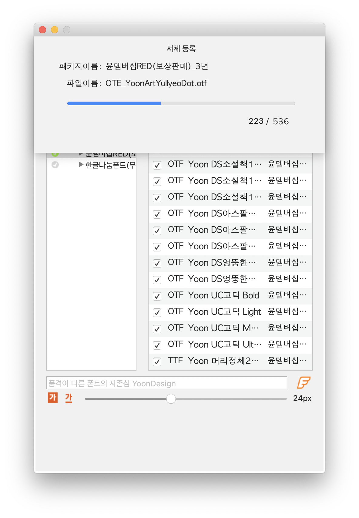 아이맥에서 사용하던 윤서체를 맥북프로에서 실행을 하면