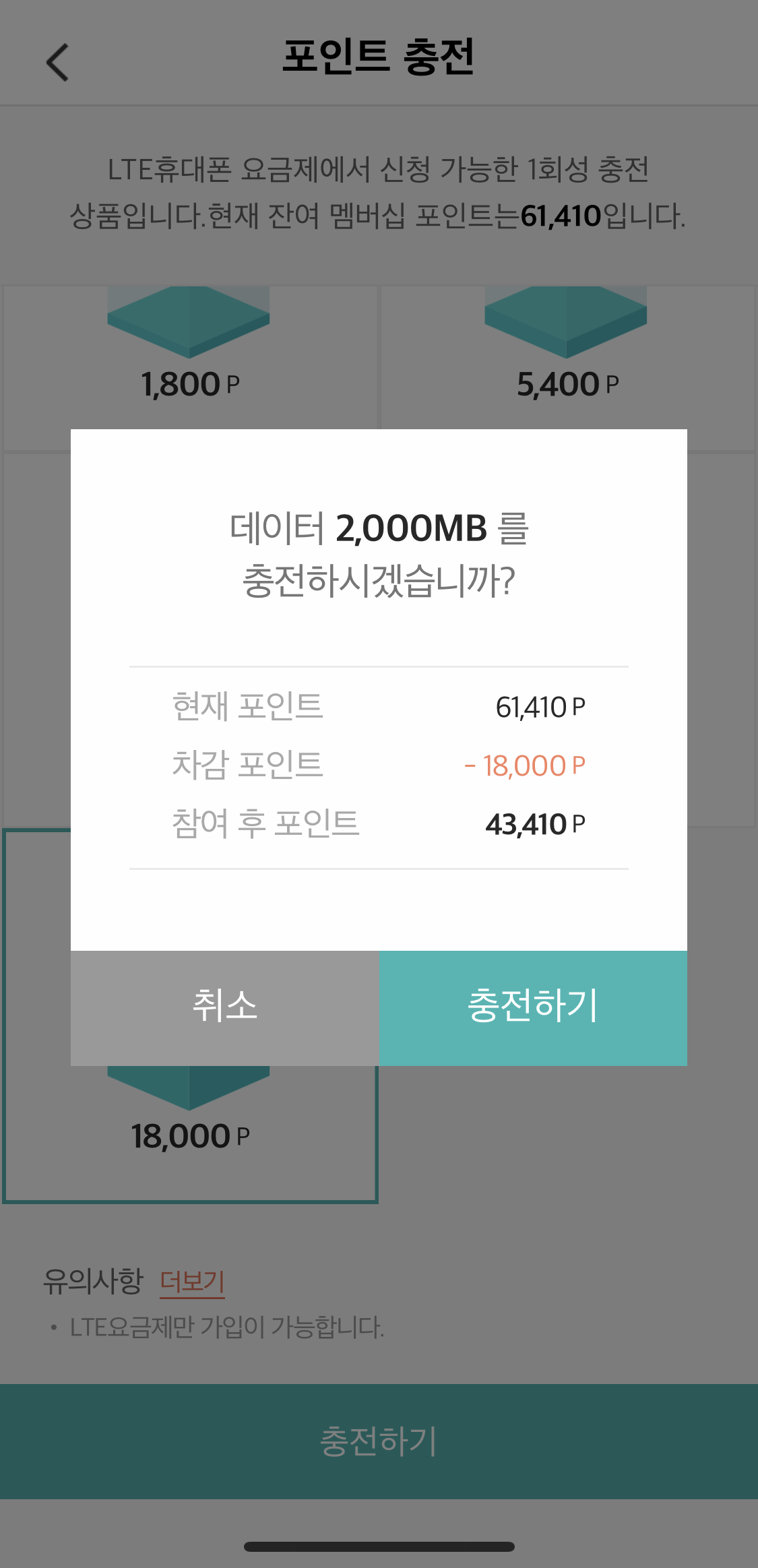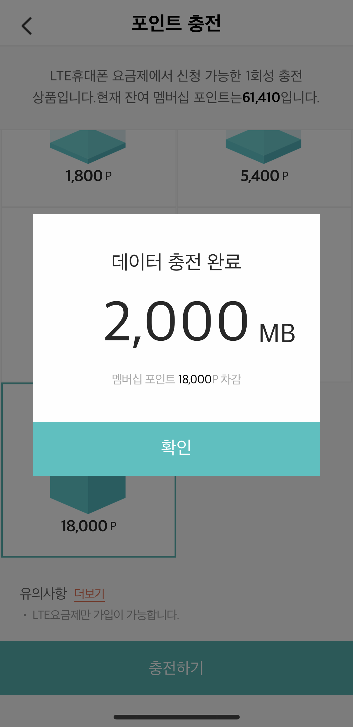 이제 남은 포인트로 충전한 데이터를 어떻게 사용할지?ㅎㅎ