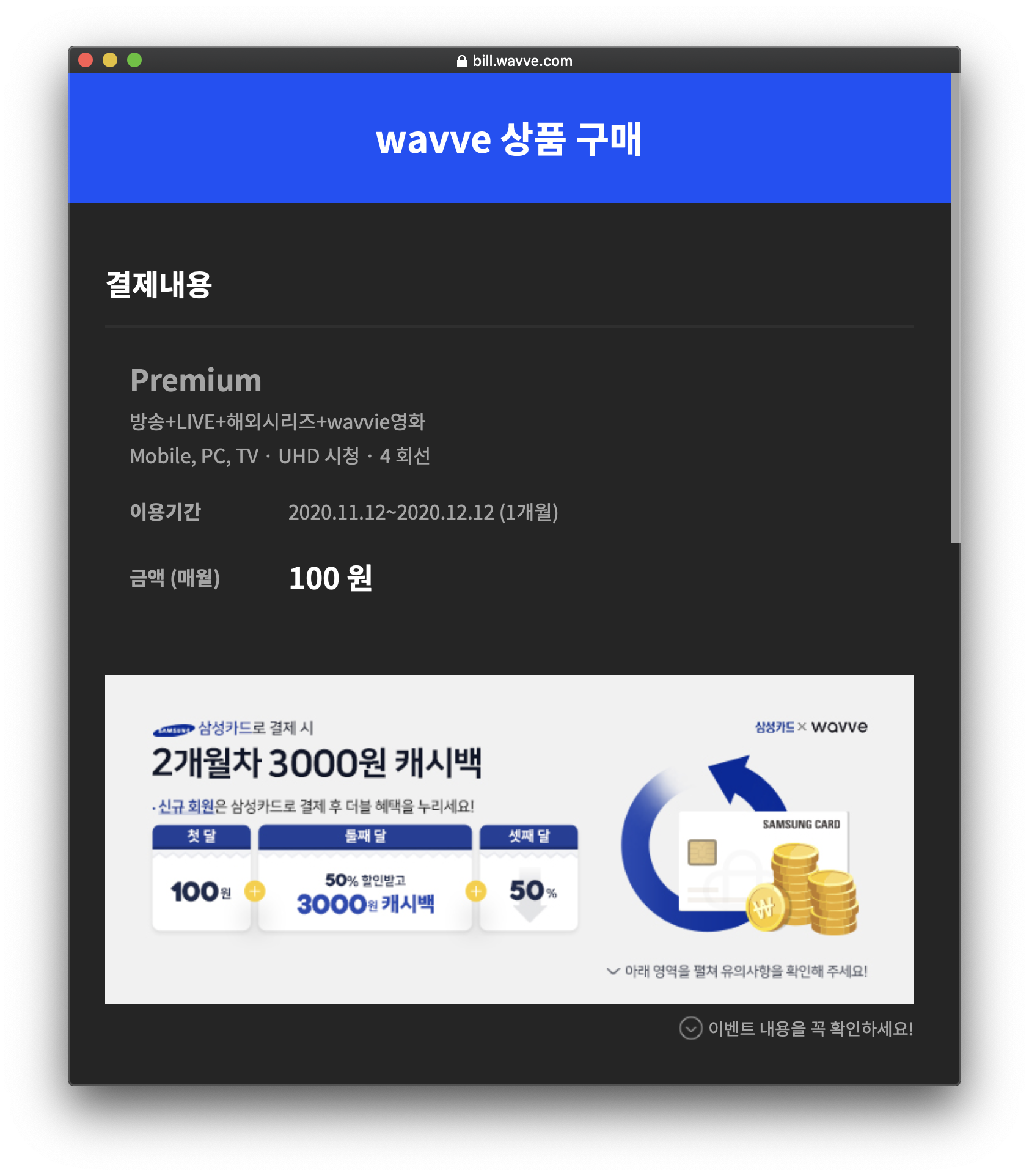 한달 무료체험을 진행하던 웨이브였는데