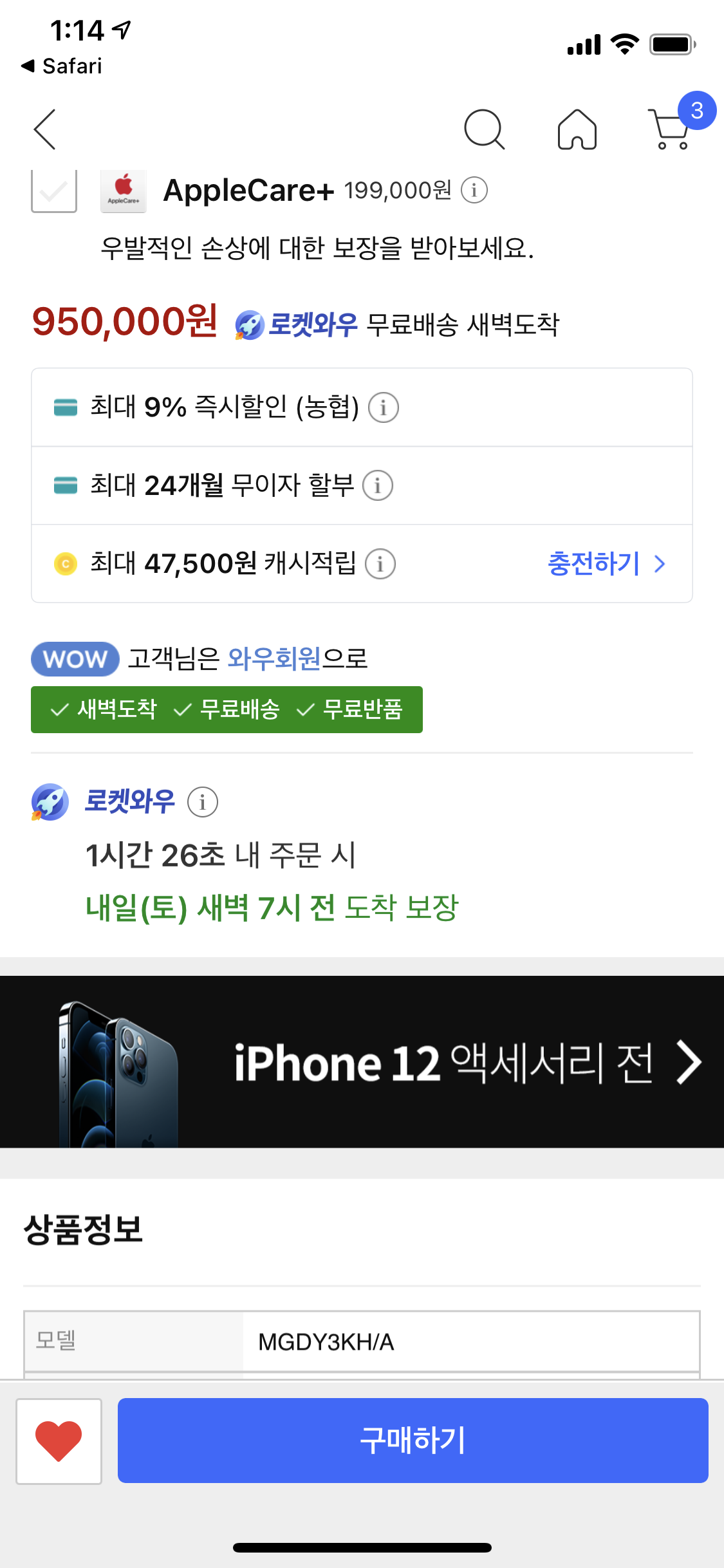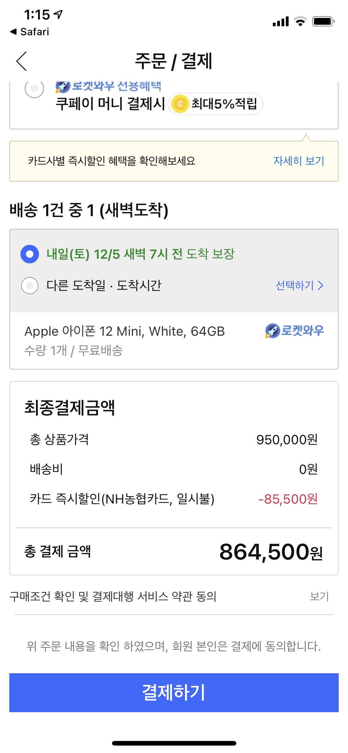 쿠팡에서 내가 아이폰12미니를 구매했을때