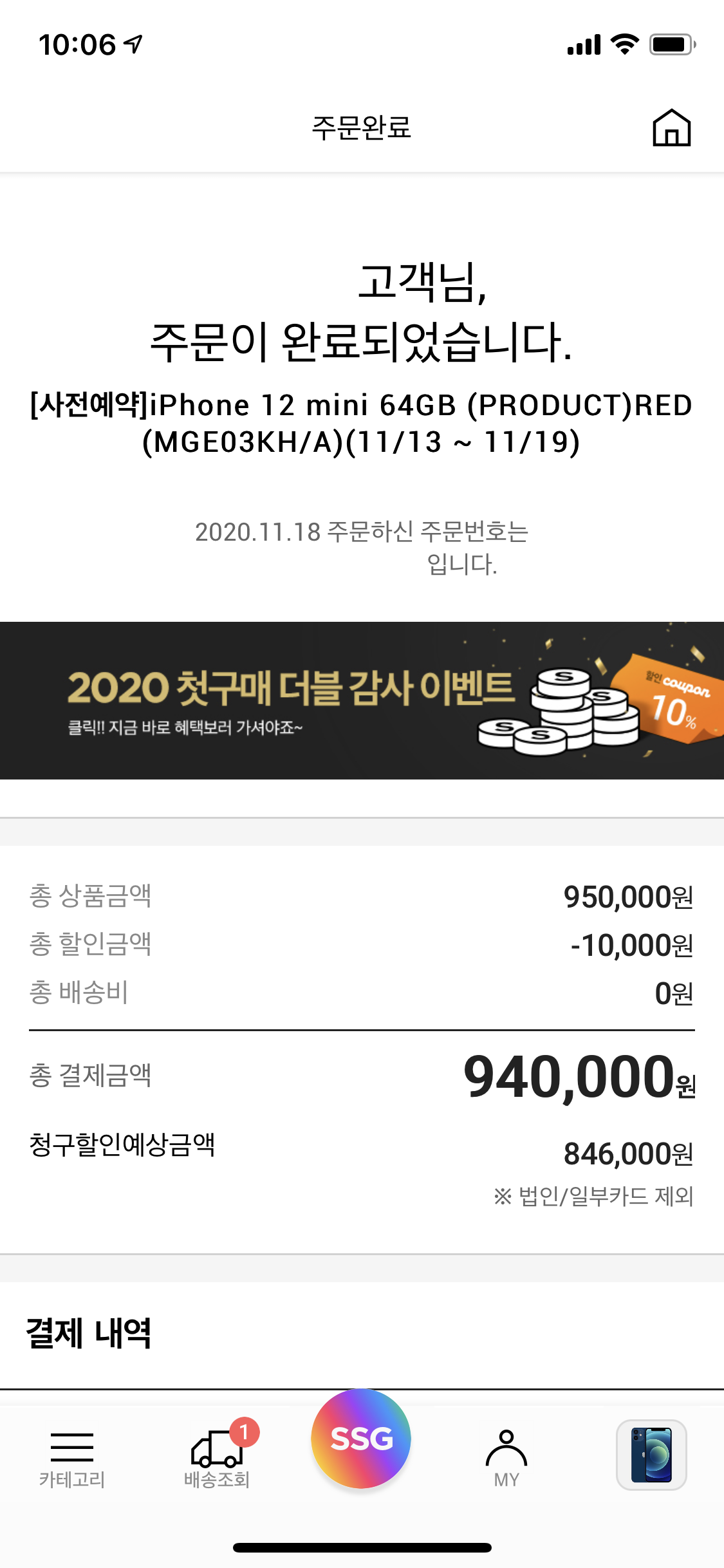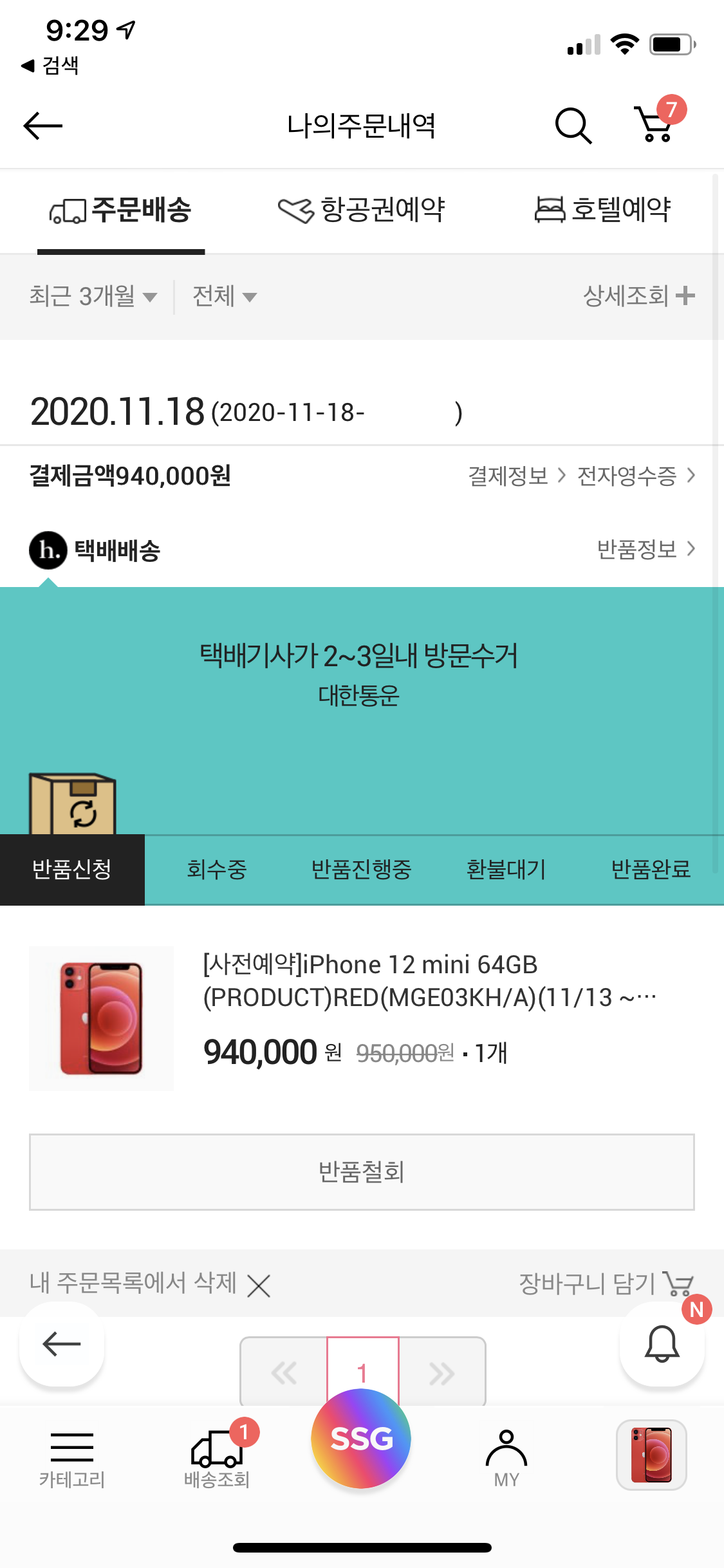 주문을 끝내고 SSG를 확인해보니