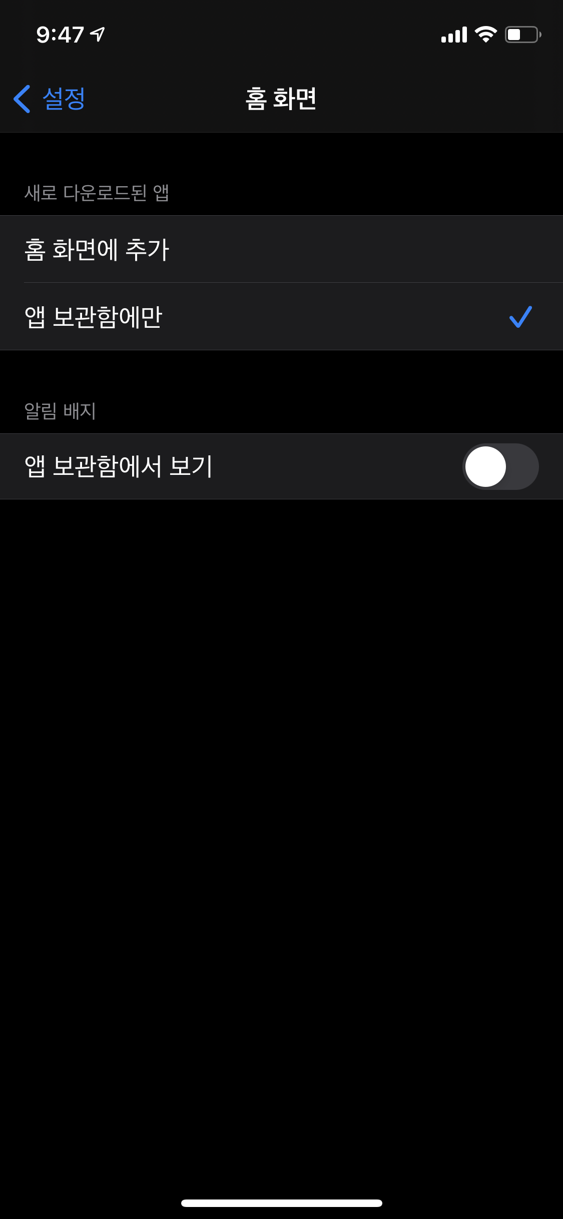 다시 앱 보관함에 새로운 앱이 설치되게 변경하고