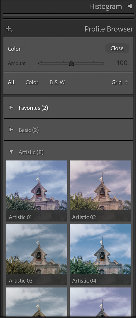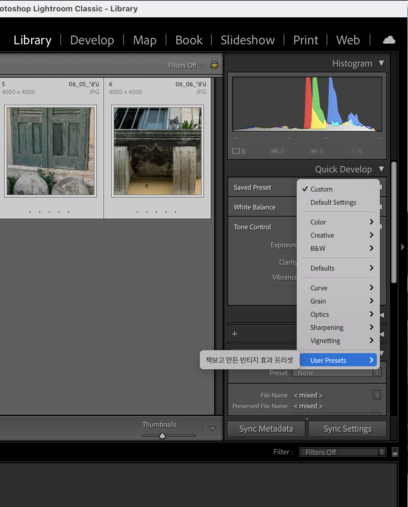 그럼 라이트룸에 기본적으로 셋팅되어있는 이미지를 선택해서 적용을 한다.