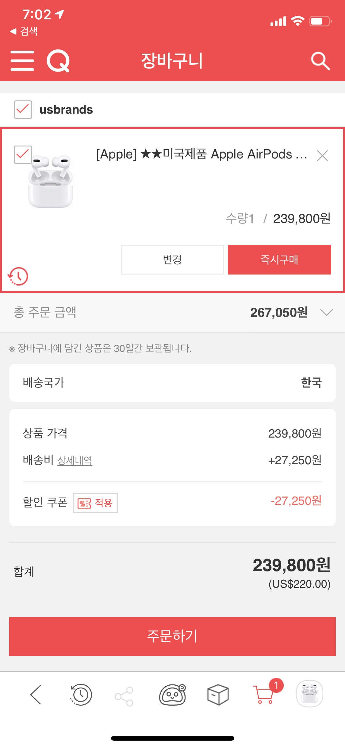 큐텐에서 20달러 쿠폰적용하면 지금 제일 저렴한 가격으로 구매할 수 있다