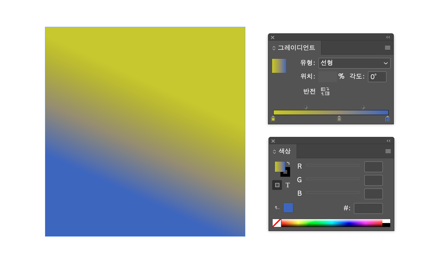 그레이디언트 패널과 색상패널을 동시에 열어놓고 사용해야 한다!