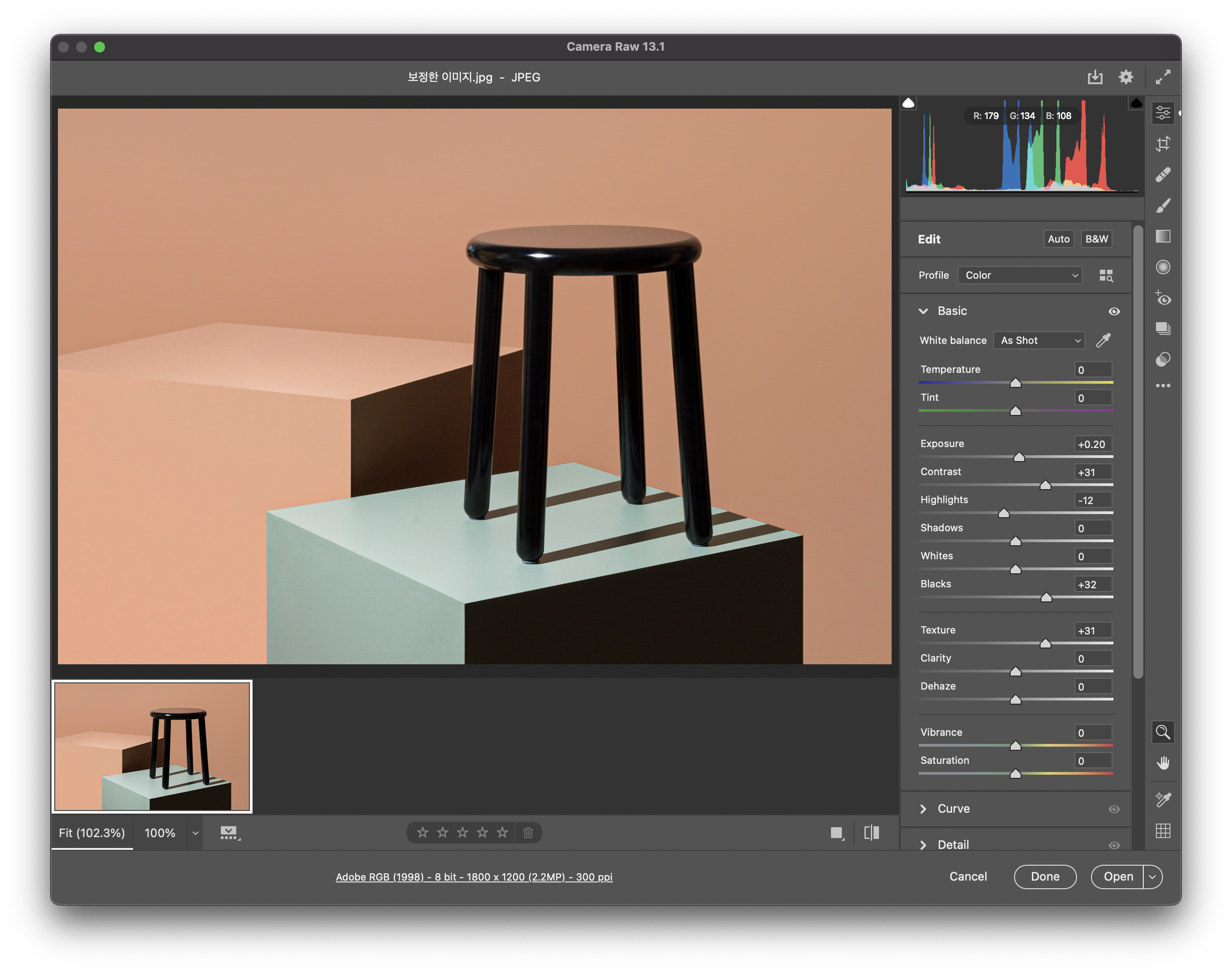 이미지를 수정한 후 나중에 다시 전에 수정한 값에서 조금 더 변경을 하거나 원본값으로 되돌리거나 할 수 있다.