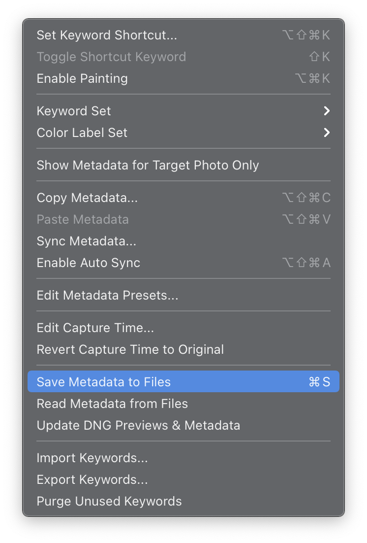 [metadata]- [Save Metadata to Files] 를 클릭하면
