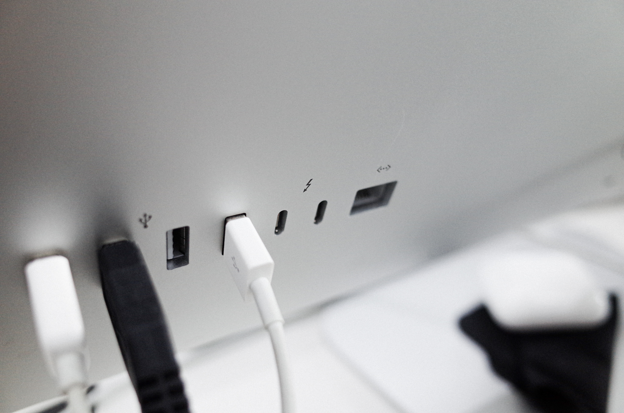 아이맥 뒷쪽은 이렇게 usb-c 타입 2개를 꽂을 수 있어서