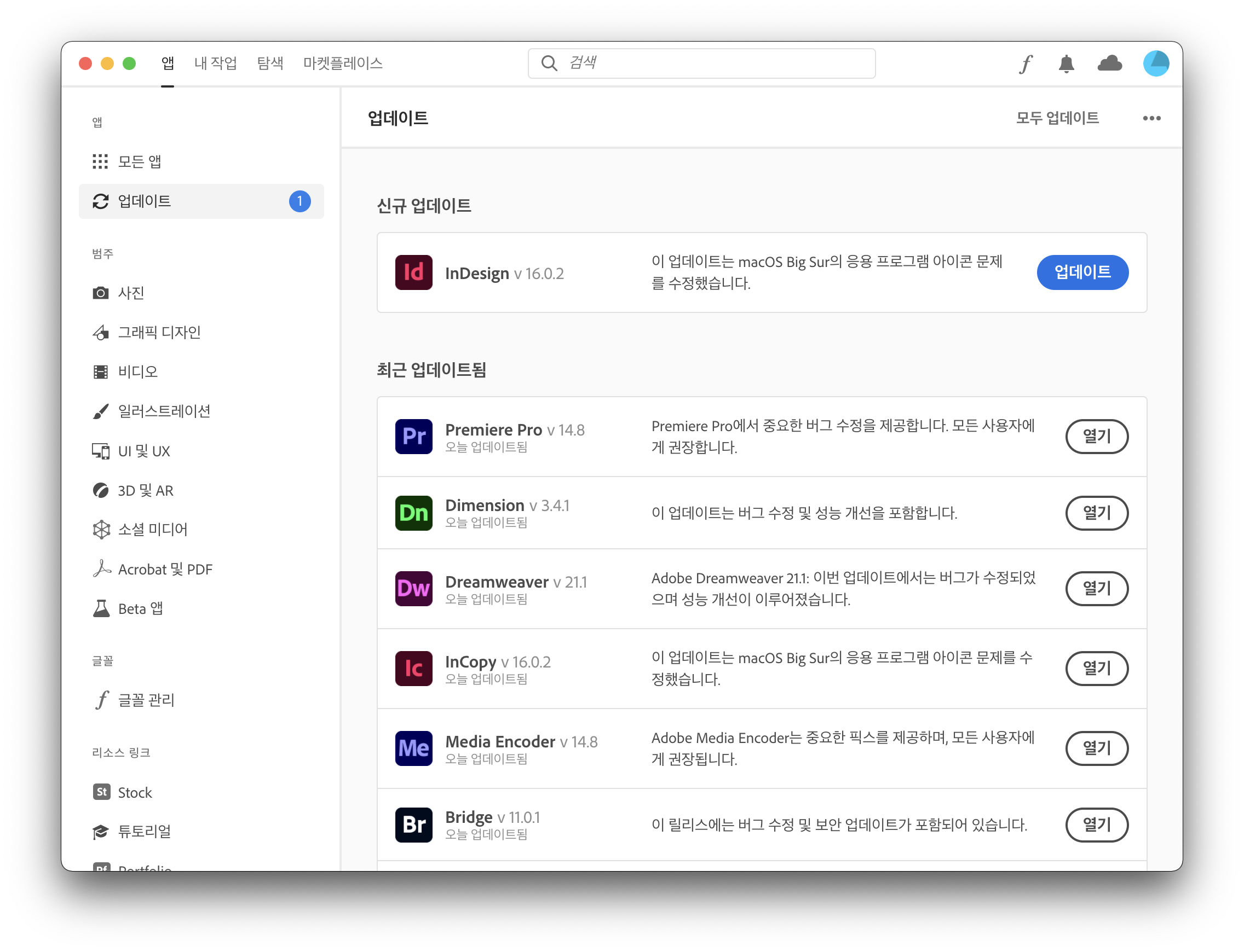 하위버젼으로 사용했었는데 인디자인 16.0.2가 떴길래