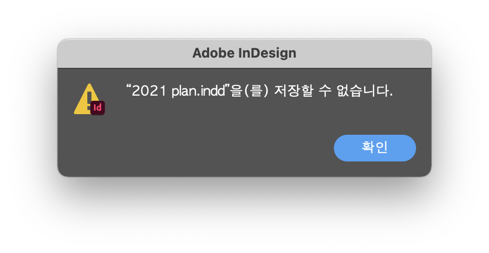 가끔씩 이렇게 저장을 할 수 없다는 경고 팝업이 뜰때가 있다!