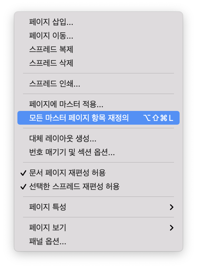 모든 마스터 페이지 항목 재정의 (cmd+shift+opt+L)을 한다.
