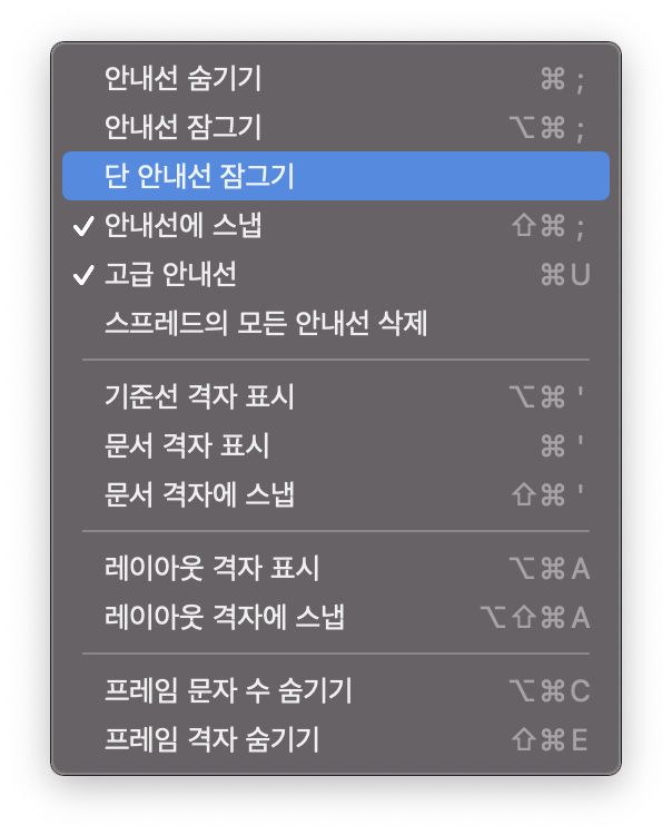 단 안내선 잠그기를 해지해야 안내선을 이동시킬 수 있다.