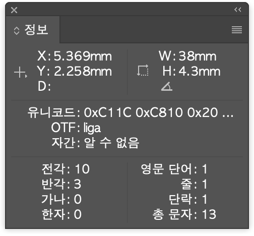 인디자인을 사용하면서 정보 패널을 사용하지 않고 있었는데