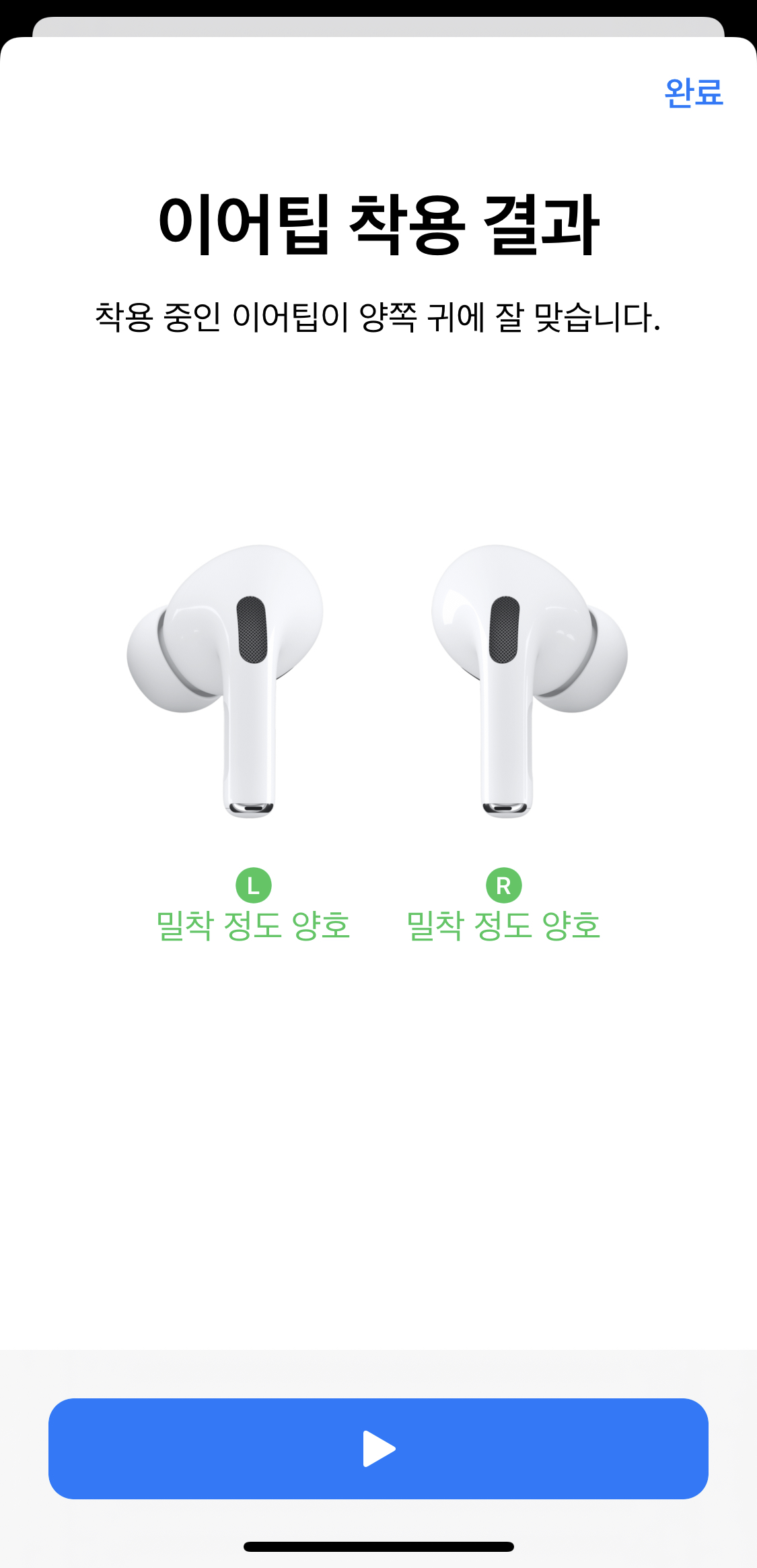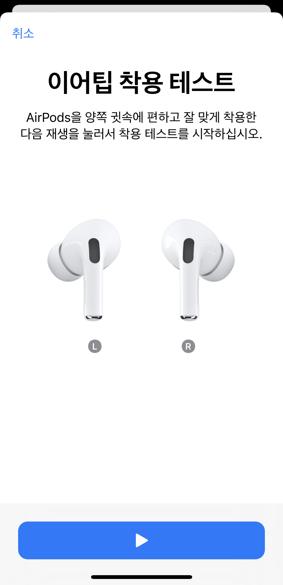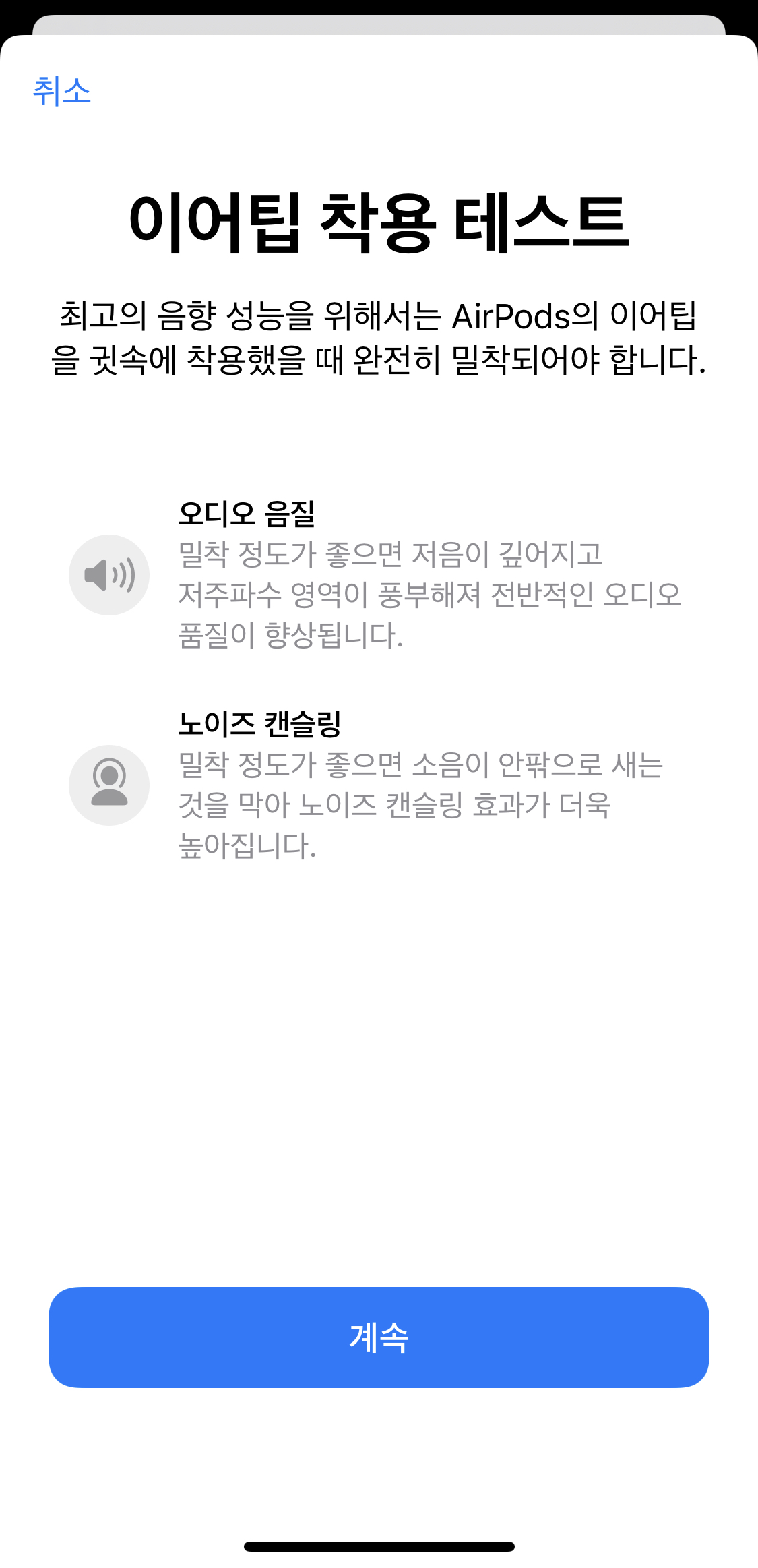 그걸 터치하면 에어팟프로가 내 귀에 잘 맞는지 테스트를 해준다.